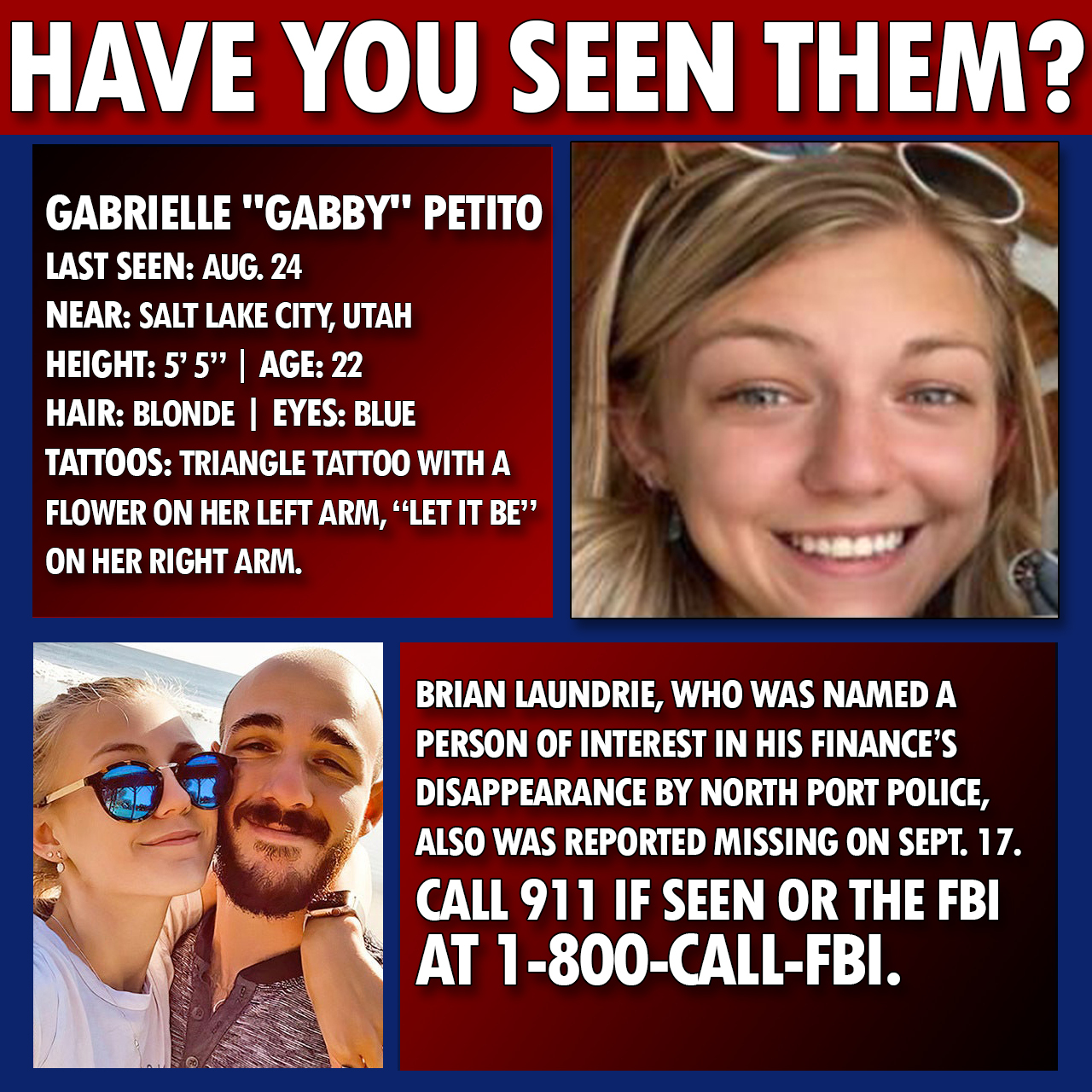 Gabby Petitos remains have been. The camper van was located at the home of her boyfriends parents in North Port Florida on the weekend of September 11 the day. Social media gives glimpse inside Petito Laundries road trip The case of missing Gabby Petito took a tragic turn Sunday when police found human remains during their.